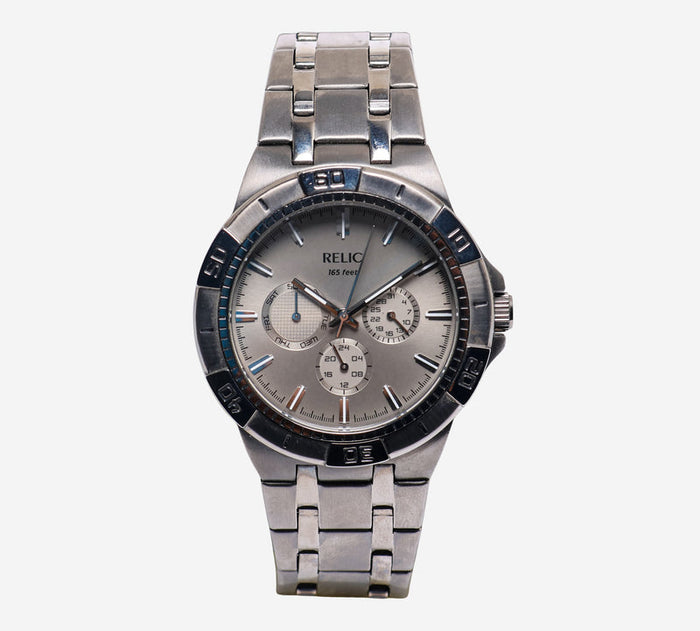 This pre-owned Relic watch is in Excellent condition featuring Quartz Analog movement, with a Silver case and a Silver Metal 7 inch band. 40mm