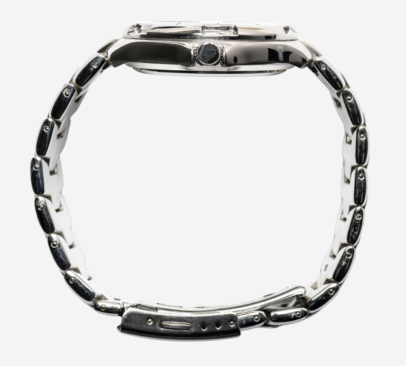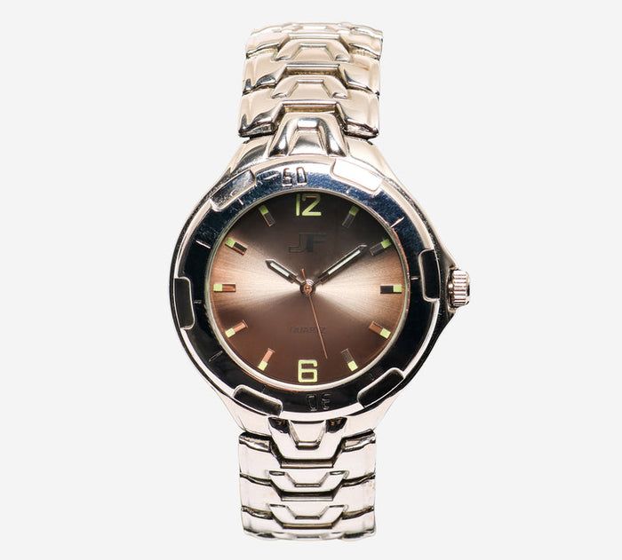 This pre-owned JF watch is in Excellent condition featuring Quartz Analog movement, with a Silver case and a Silver Metal 7 inch band. 40mm