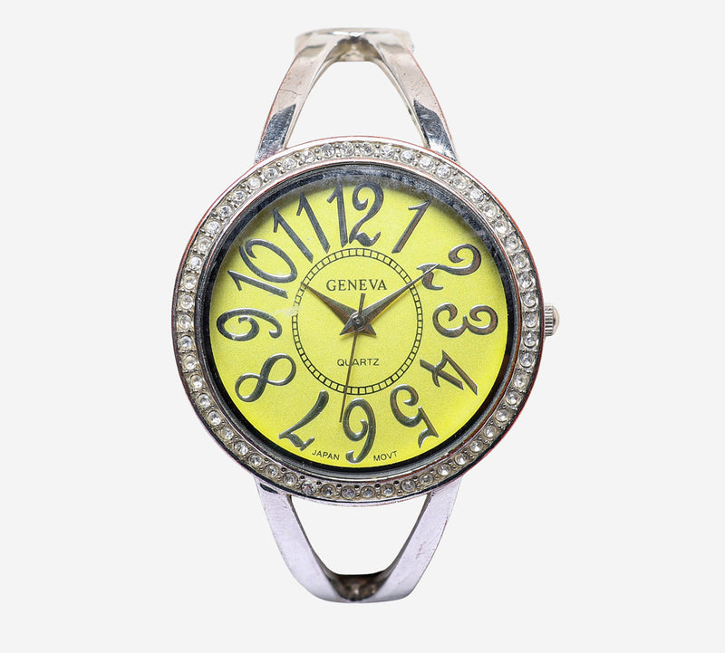 This pre-owned Geneva watch is in Excellent condition featuring Quartz Analog movement, with a Silver case and a Silver Metal 6 inch band. Own a piece of watchmaking history and give this watch a second life. All watch movements and batteries have been tested and operate as intended. No battery included for D5quartz watches. We cannot guarantee water resistance ratings are intact.