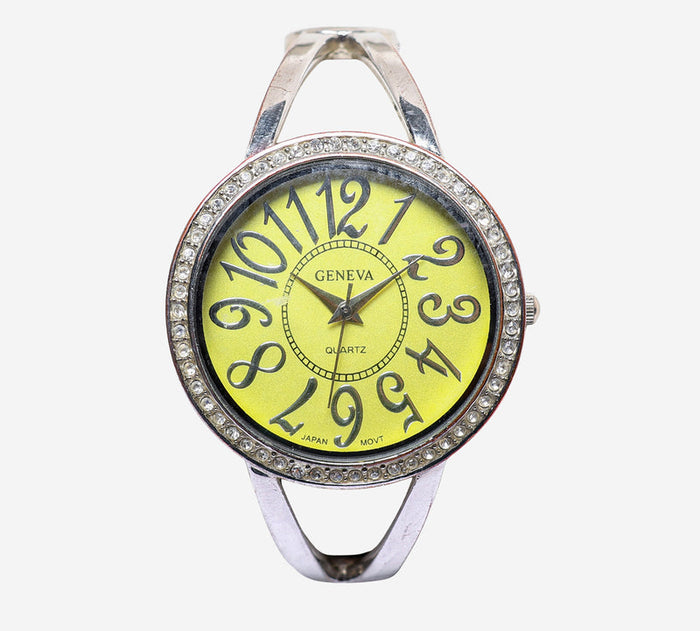 Geneva Rewound Silvered Colored and Yellow Metal Bracelet Quartz Analog Watch 35mm