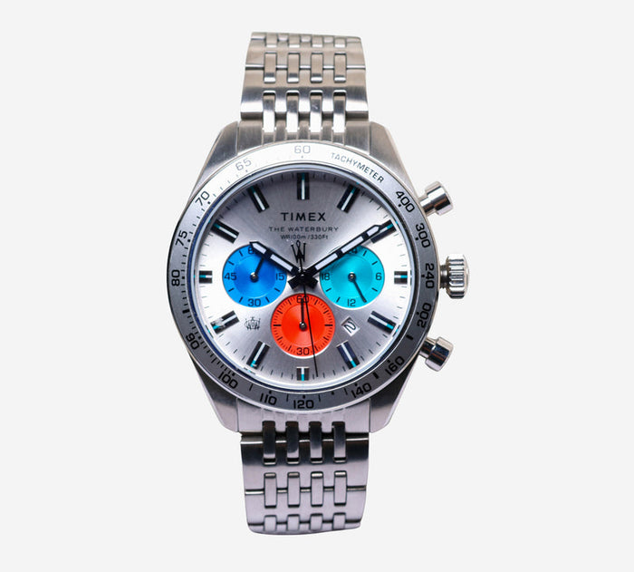 Timex Rewound Waterbury Silver Colored Metal Bracelet Quartz Analog Watch 40mm