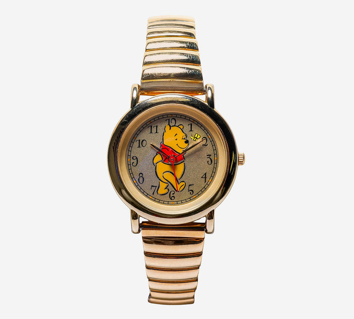 Timex Rewound Winnie the Pooh Gold Colored Metal Bracelet quartz Analog Watch 30mm