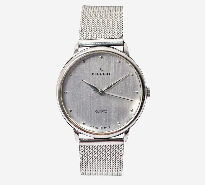 This pre-owned Peuget watch is in Excellent condition featuring Quartz Analog movement, with a Silver case and a Silver Metal 7 inch band.