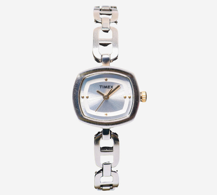 Timex Rewound Square Silver Metal Bracelet Quartz Analog Watch