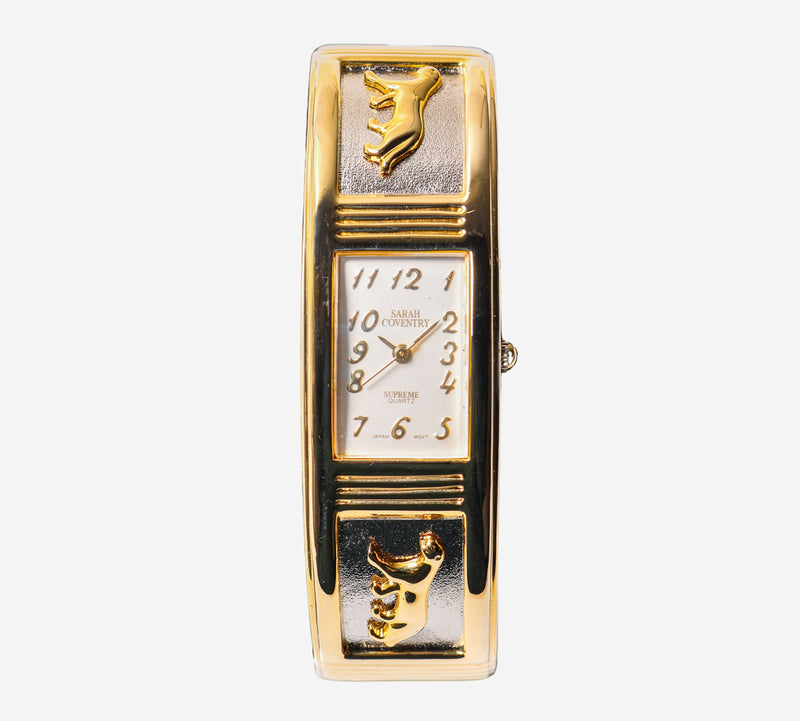 This pre-owned Sarah Conventry watch is in Excellent condition featuring Quartz Analog movement, with a Gold case and a Gold Metal 7 inch band 20mm