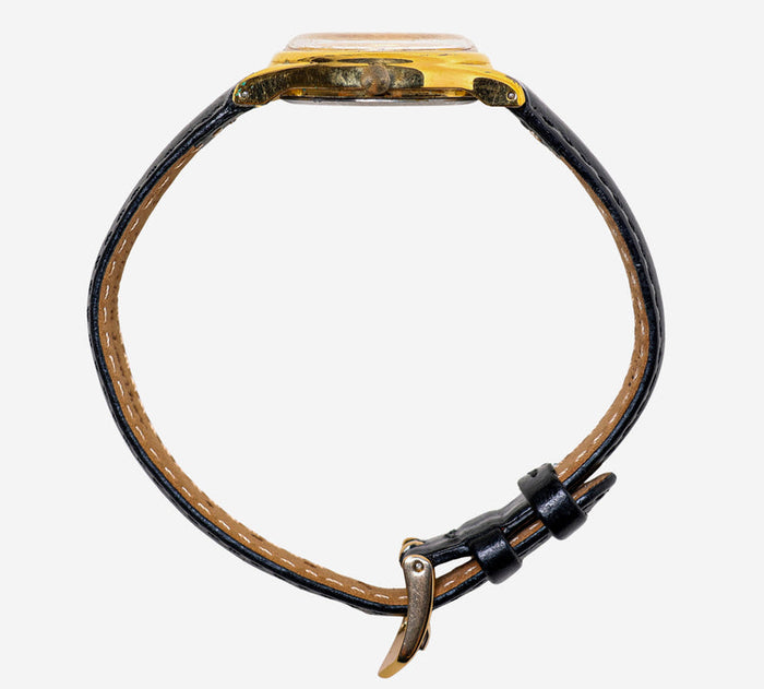 This pre-owned Lorus watch is in Good condition featuring Quartz Analog movement, with a Gold case and a Black Leather 7 inch band. Own a piece of watchmaking history and give this watch a second life. All watch movements and batteries have been tested and operate as intended. No battery included for D5quartz watches. We cannot guarantee water resistance ratings are intact.