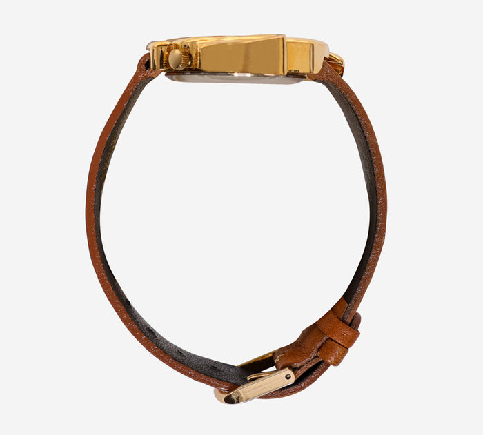 This pre-owned watch is in Good condition featuring a Gold Case, Brown Leather and Quartz Analog movement. This watch has a soul and a story to be told, continue its legacy with a second life.