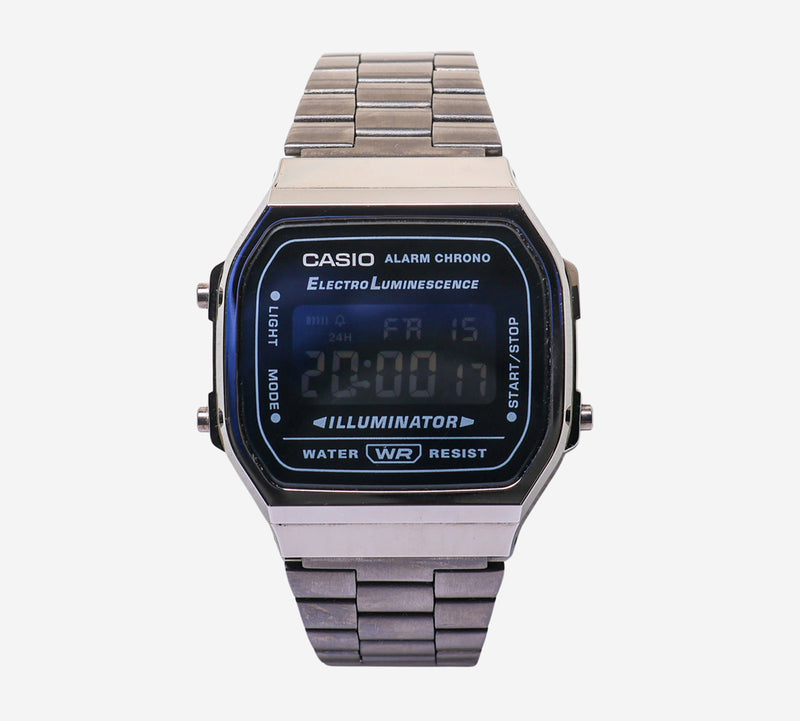 This pre-owned Casio watch is in Excellent condition featuring Quartz Digital movement, with a Black case and a Gray Metal 7 inch band. Own a piece of watchmaking history and give this watch a second life. All watch movements and batteries have been tested and operate as intended. No battery included for D5quartz watches. We cannot guarantee water resistance ratings are intact.