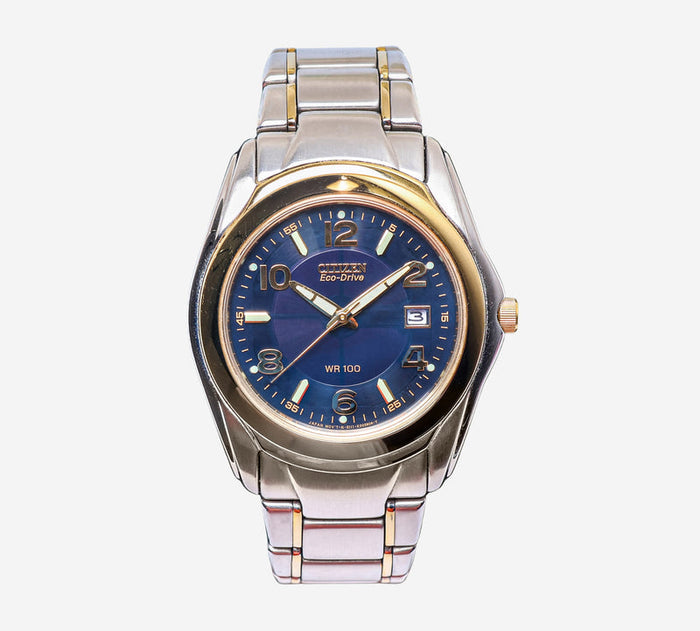 Citizen Rewound Eco-Drive Gold and Silver Colored Metal Bracelet Quartz Analog Watch