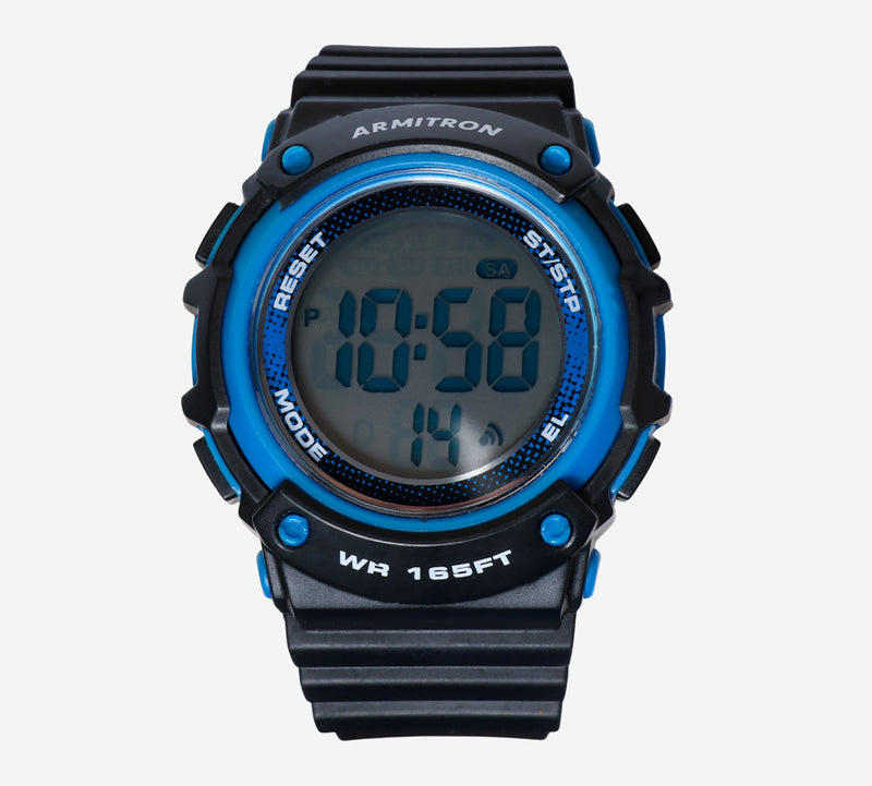This pre-owned Armitron watch is in Excellent condition featuring Quartz Digital movement, with a Blue case and a Black Resin 7 inch band 35mm