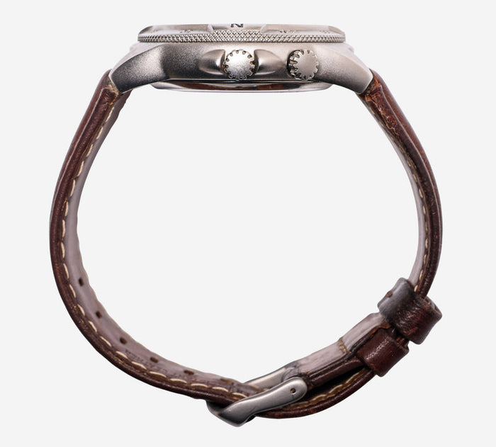 This pre-owned Timex watch is in Good condition featuring Quartz Analog & Quartz Digital movement, with a Silver case and a Brown Leather 7 inch band. 40mm