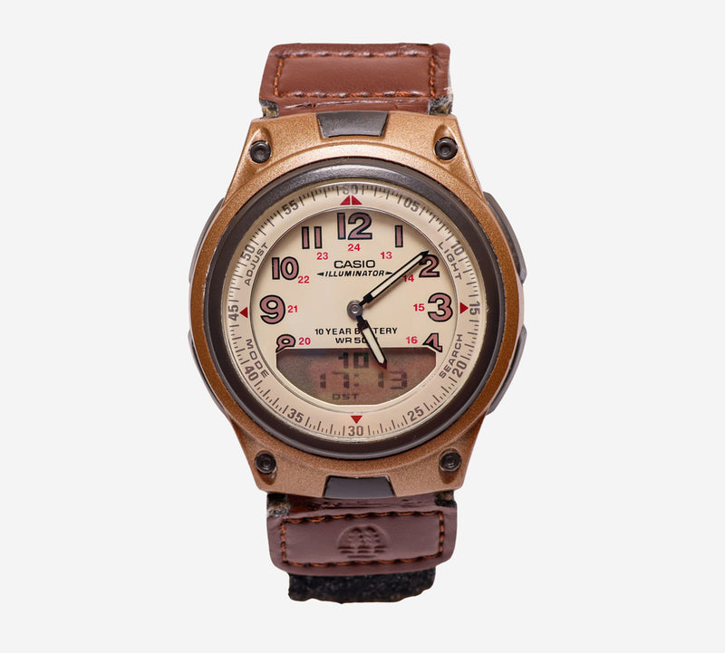 Casio Rewound Brown and Tan Colored Quartz Digital and Quartz Analog Watch