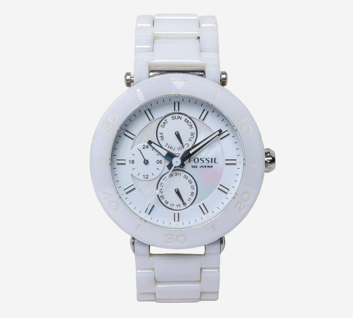 Fossil Rewound Silver and White Colored Quartz Analog Watch