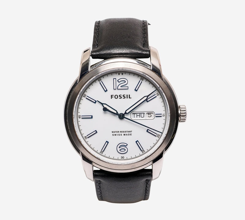 Fossil Rewound Round Silver and Black Quartz Analog Watch