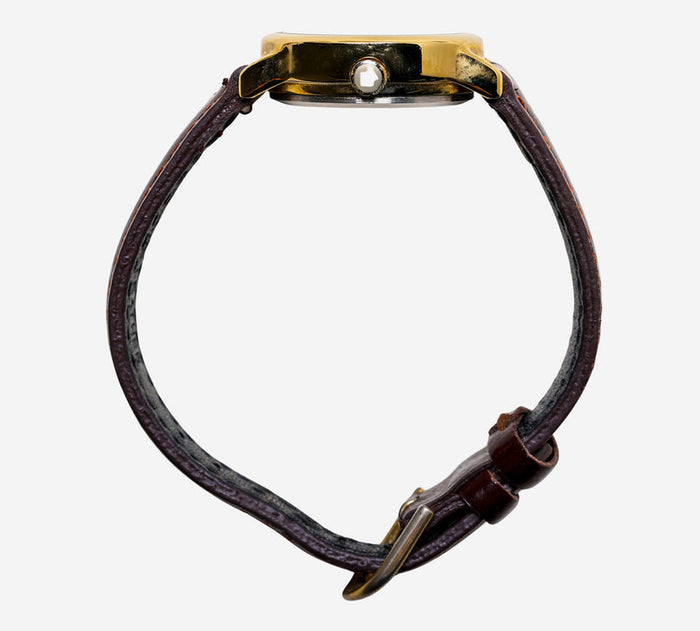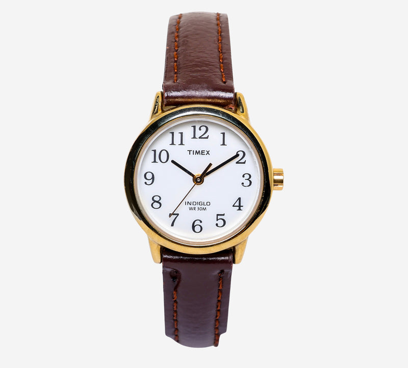 This pre-owned Timex watch is in Excellent condition featuring Quartz Analog movement, with a Gold case and a Brown Leather 6 inch band. Own a piece of watchmaking history and give this watch a second life. All watch movements and batteries have been tested and operate as intended. No battery included for D5quartz watches. We cannot guarantee water resistance ratings are intact.