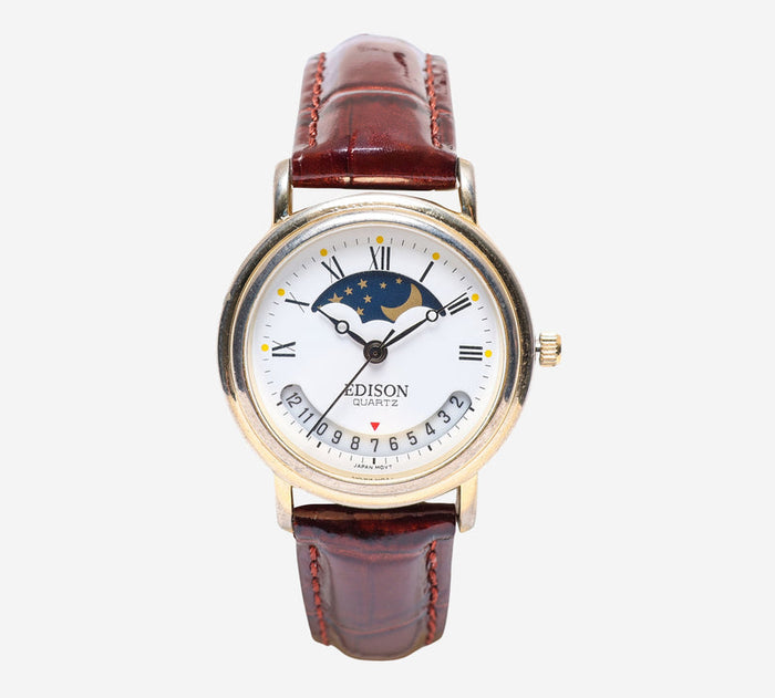 Edison Rewound Moon And Stars Gold And Brown Quartz Analog Watch