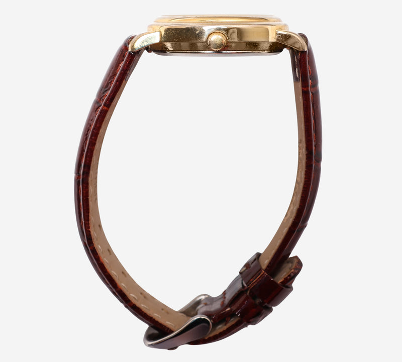 This pre-owned Edison watch is in Excellent condition featuring Quartz Analog movement, with a Gold case and a Brown Leather 7 inch band. 30mm