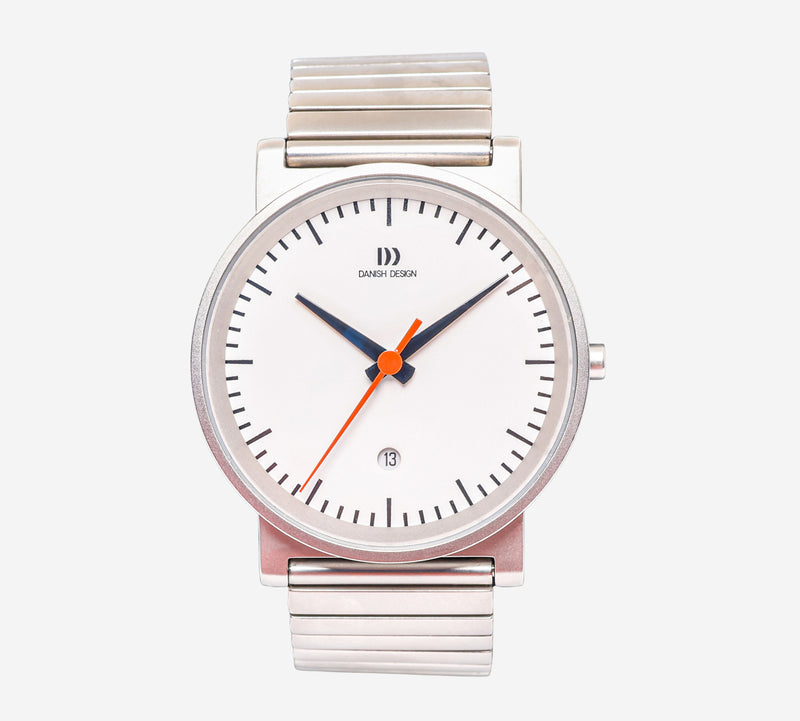 This pre-owned Danish Design watch is in Excellent condition featuring Quartz Analog movement, with a Silver case and a Silver Metal 7 inch band. 40mm