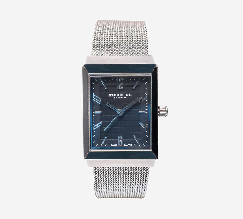 Stuhrling Rewound Square Black and Silver Metal Bracelet Quartz Analog Watch