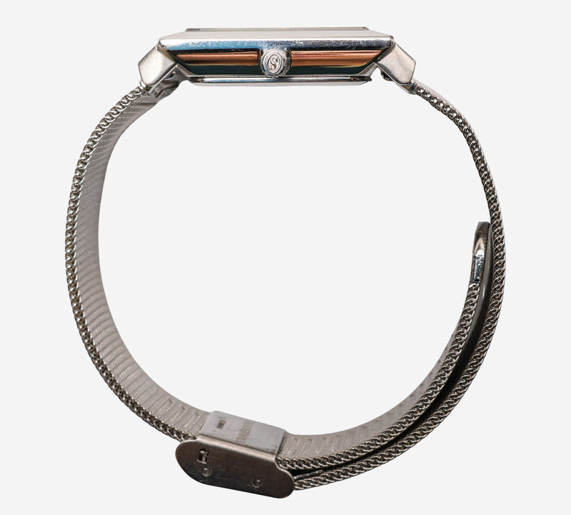 This pre-owned Stuhrling watch is in Good condition featuring Quartz Analog movement, with a Silver case and a Silver Metal 7 inch band. 25mm