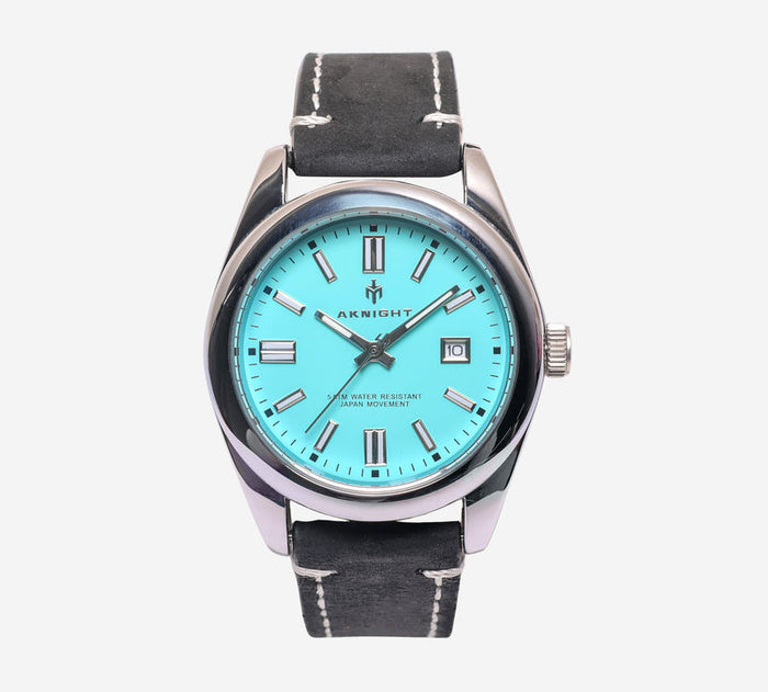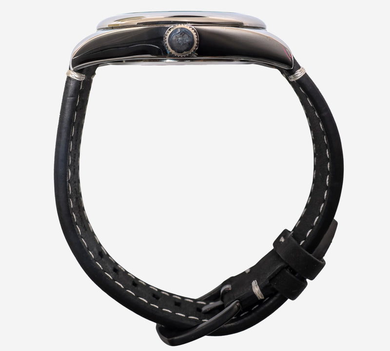 This pre-owned Aknight watch is in Excellent condition featuring Quartz Analog movement, with a Silver case and a Black Leather 7 inch band. 40mm