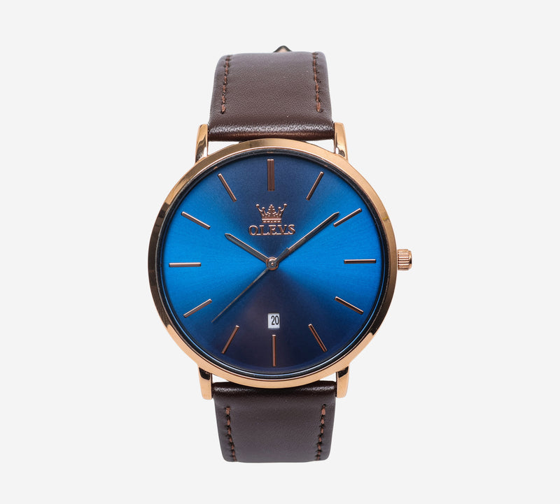 Olevs Rewound Black and Blue Quartz Analog Watch