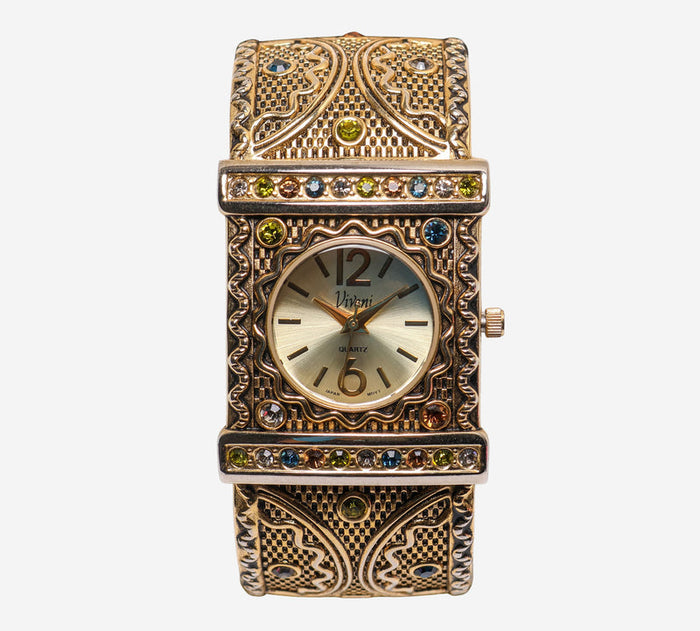 This pre-owned Vivani watch is in Excellent condition featuring Quartz Analog movement, with a Gold case and a Gold Leather 5 inch band. 35mm