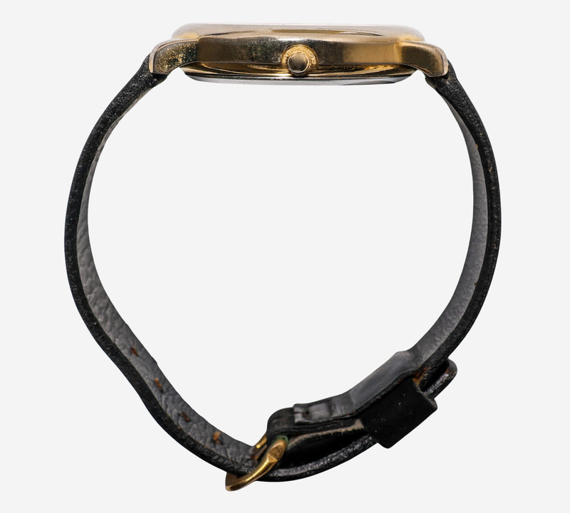 This pre-owned Rewound watch is in Good condition featuring Quartz Analog movement, with a Gold case and a Black Metal 7 inch band. 35mm