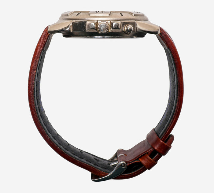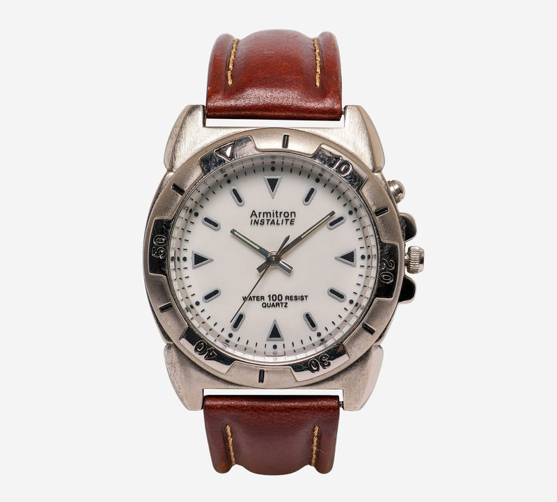 This pre-owned Armitron watch is in Excellent condition featuring Quartz Analog movement, with a Silver case and a Brown Leather 7 inch band. 35mm
