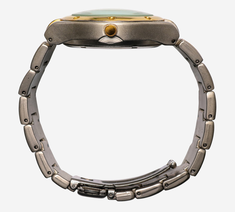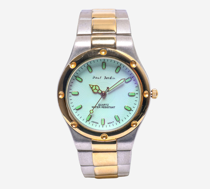 This pre-owned Paul Jardin watch is in Excellent condition featuring Quartz Analog movement, with a Gold case and a Silver and Gold Metal 7 inch band. 35mm