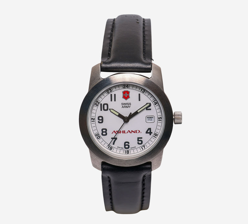 This pre-owned Ashland watch is in Excellent condition featuring Quartz Analog movement, with a Silver case and a Black Metal 7 inch band. 30mm