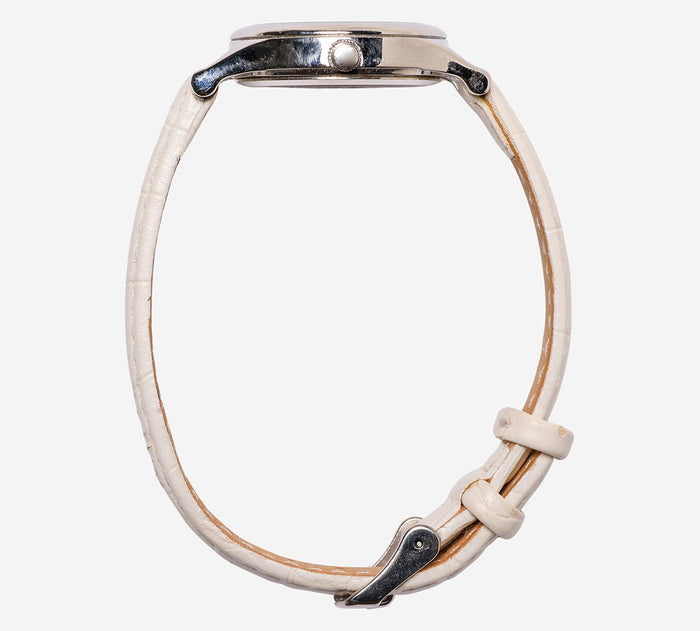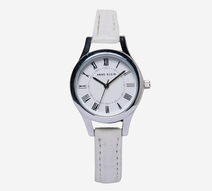 This pre-owned Anne Klein watch is in Excellent condition featuring Quartz Analog movement, with an Silver Case and a White Leather band. Own a piece of watchmaking history and give this watch a second life. All watch movements and batteries have been tested and operate as intended. No battery included for D5quartz watches. We cannot guarantee water resistance ratings are intact.