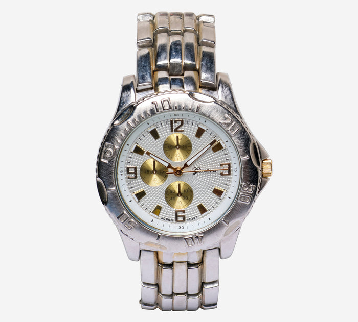Geneva Rewound Silver and Gold Round Metal Bracelet Quartz Analog Watch