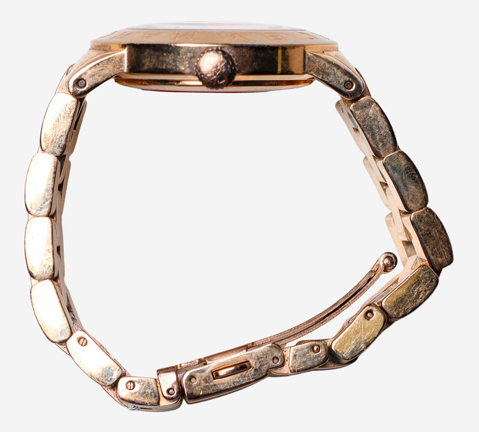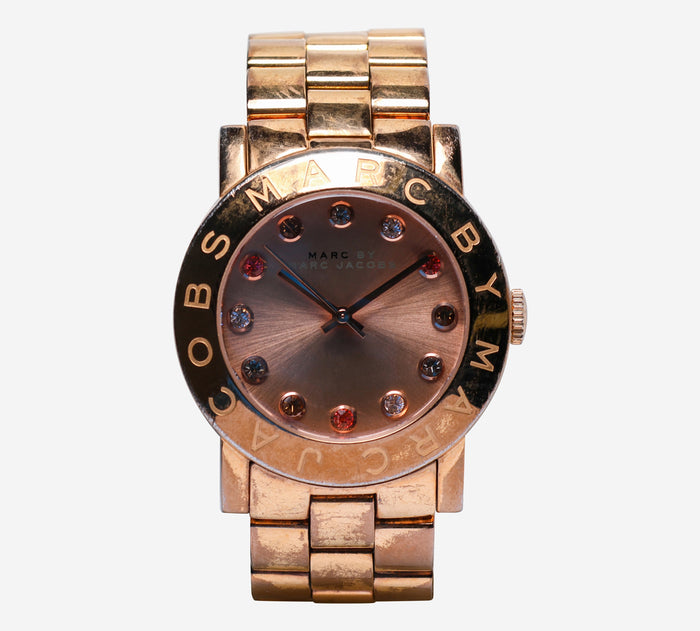 This pre-owned Marc Jacobs watch is in Good condition feturing an Quartz Analog movement, with an Gold Case and an Gold Metal. Own a piece of watchmaking history and give this watch a second life. All watch movements and batteries have been tested and operate as intended. No battery included for D5quartz watches. We cannot guarantee water restance ratings are intact.