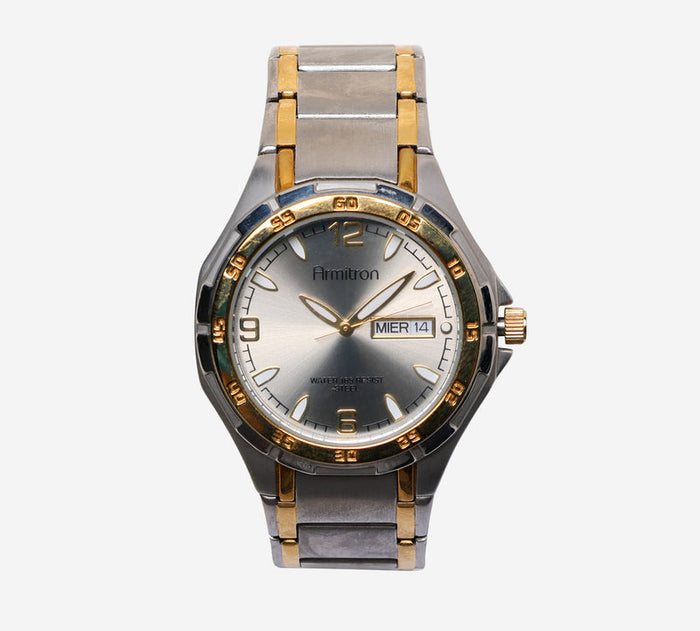 Armitron Rewound Silver and Gold Metal Bracelet Quartz Analog Watch