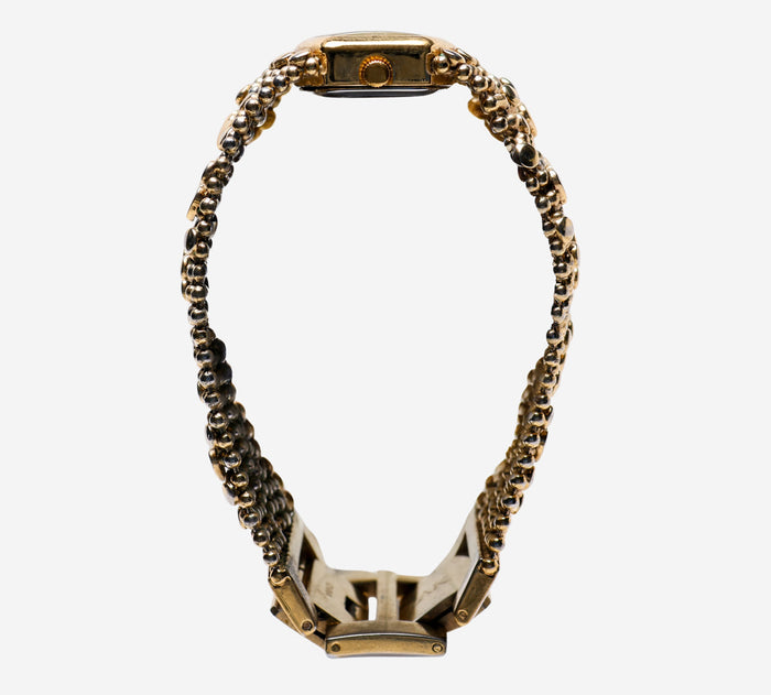 This pre-owned Anne Klein watch is in Excellent condition featuring Quartz Analog movement, with a Gold Case and a Gold Metal band.