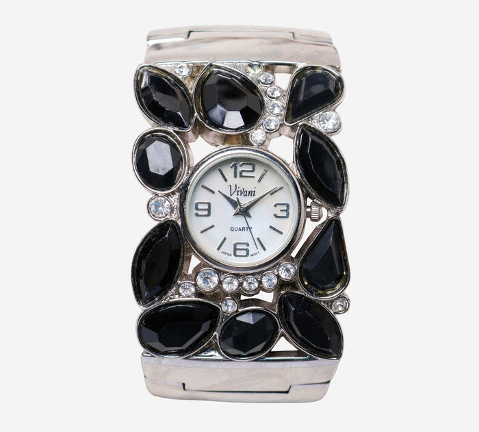 Vivani Rewound Diamond Black and Silver Metal Bracelet Quartz Analog Watch