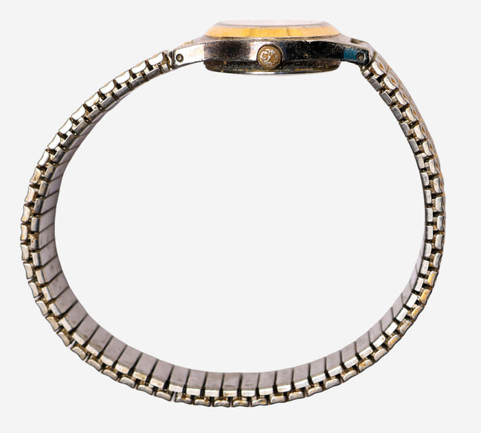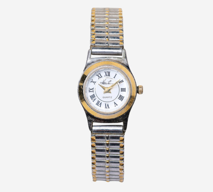 This pre-owned Kathie Lee watch is in Good condition featuring Quartz Analog movement, with a Gold case and a Silver and Gold Metal 6 inch band. Own a piece of watchmaking history and give this watch a second life. All watch movements and batteries have been tested and operate as intended. No battery included for D5quartz watches. We cannot guarantee water resistance ratings are intact.