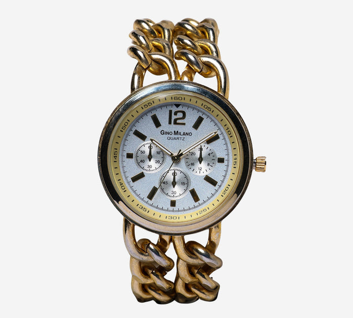 Gino Milano Rewound Gold Metal Chain Bracelet Quartz Analog Watch
