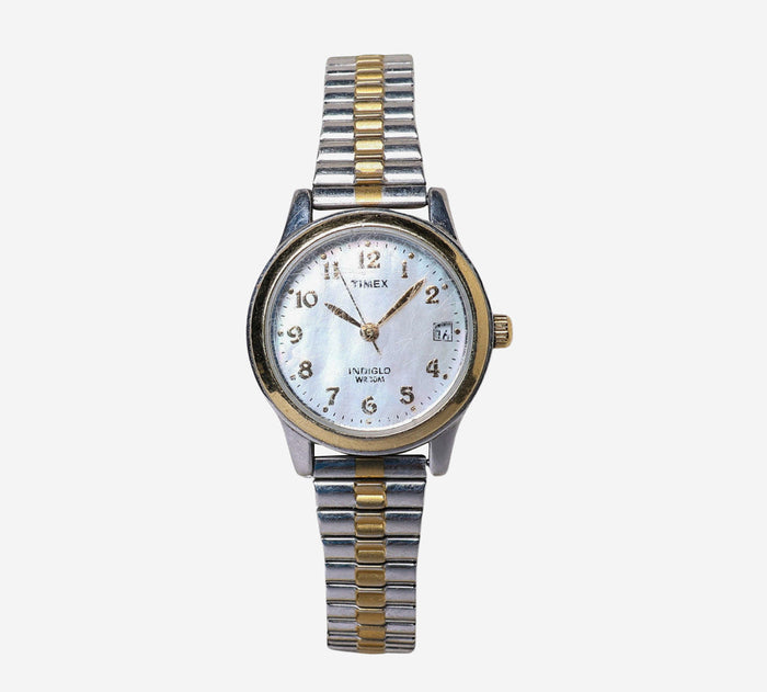This pre-owned Timex watch is in Good condition featuring Quartz Analog movement, with a Gold case and a Gold & Silver Metal 7 inch band. Own a piece of watchmaking history and give this watch a second life. All watch movements and batteries have been tested and operate as intended. No battery included for D5quartz watches. We cannot guarantee water resistance ratings are intact.