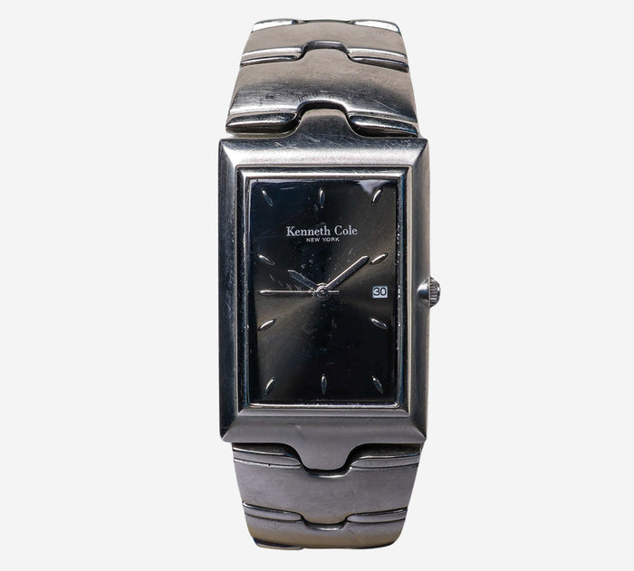 This pre-owned Kenneth Cole watch is in Good condition featuring Quartz Analog movement, with a Silver case and a Silver Metal 7 inch band. Own a piece of watchmaking history and give this watch a second life. All watch movements and batteries have been tested and operate as intended. No battery included for D5quartz watches. We cannot guarantee water resistance ratings are intact.