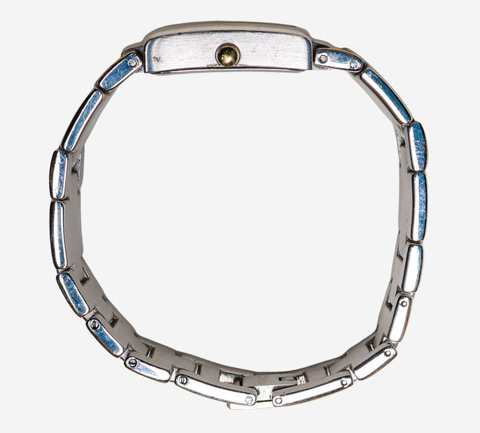This pre-owned Anne Klein II watch is in Good condition featuring Quartz Analog movement, with a Silver case and a Silver & Gold Metal 5.5 inch band. Own a piece of watchmaking history and give this watch a second life. All watch movements and batteries have been tested and operate as intended. No battery included for D5quartz watches. We cannot guarantee water resistance ratings are intact.
