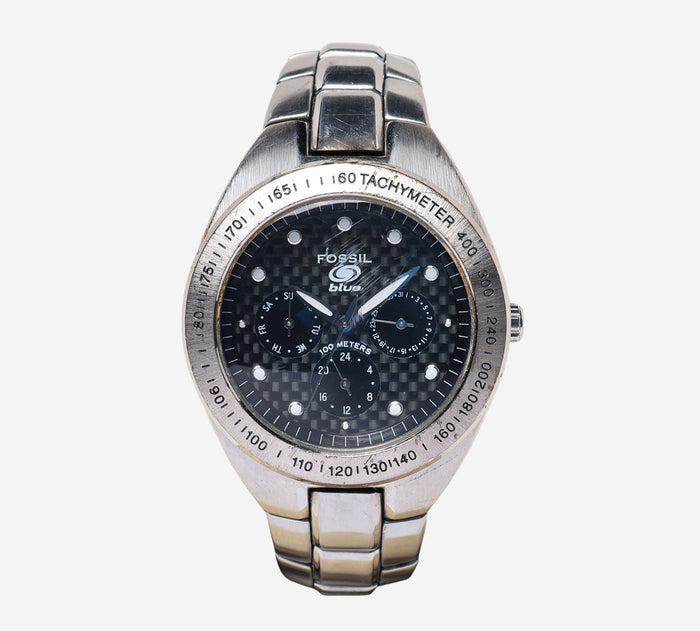 Fossil Rewound Fossil Blue Round Silver Metal Bracelet Quartz Analog Watch