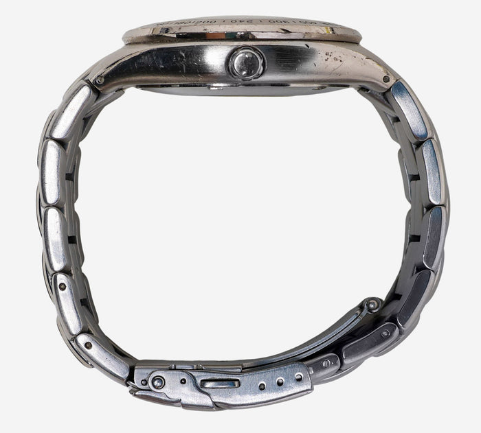 This pre-owned Fossil watch is in Good condition featuring Quartz Analog movement, with a Silver case and a Silver Metal 7 inch band. Own a piece of watchmaking history and give this watch a second life. All watch movements and batteries have been tested and operate as intended. No battery included for D5quartz watches. We cannot guarantee water resistance ratings are intact.