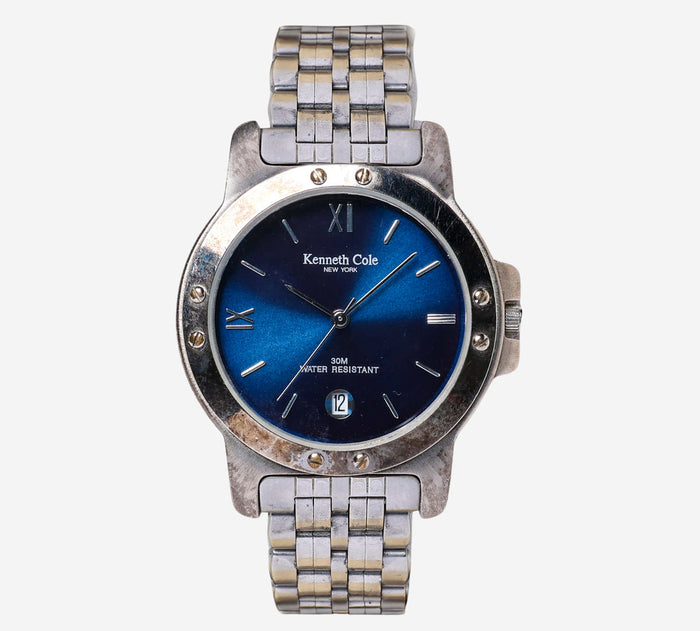 Kenneth Cole Rewound Blue and Silver Round Metal Quartz Analog Watch
