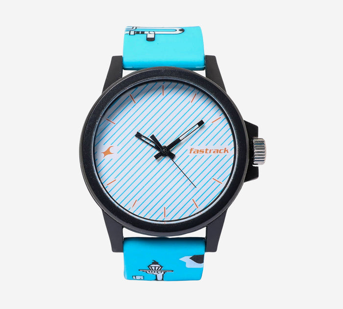 This pre-owned Fastrack watch is in Excellent condition featuring Quartz Analog movement, with a Black case and a Blue Resin 7 inch band. Own a piece of watchmaking history and give this watch a second life. All watch movements and batteries have been tested and operate as intended. No battery included for D5quartz watches. We cannot guarantee water resistance ratings are intact.