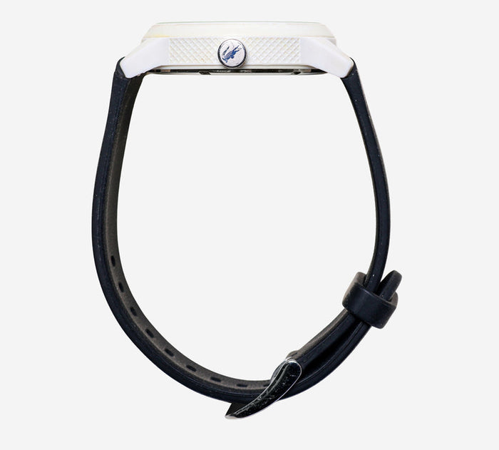 This pre-owned Lacoste watch is in Excellent condition featuring Quartz Analog movement, with a White case and a Black Resin 7.5 inch band. Own a piece of watchmaking history and give this watch a second life. All watch movements and batteries have been tested and operate as intended. No battery included for D5quartz watches. We cannot guarantee water resistance ratings are intact.