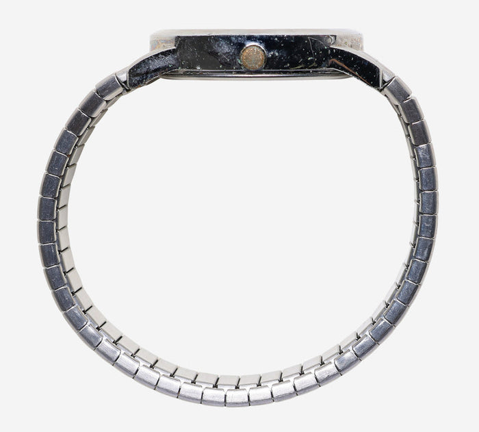 This pre-owned Timex watch is in Good condition featuring Quartz Analog movement, with a Silver case and a Silver Metal 7 inch band. Own a piece of watchmaking history and give this watch a second life. All watch movements and batteries have been tested and operate as intended. No battery included for D5quartz watches. We cannot guarantee water resistance ratings are intact.