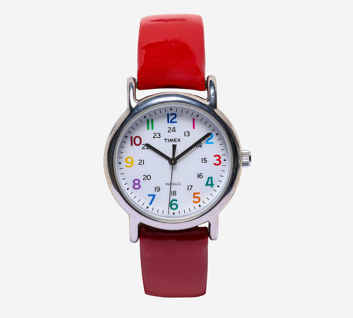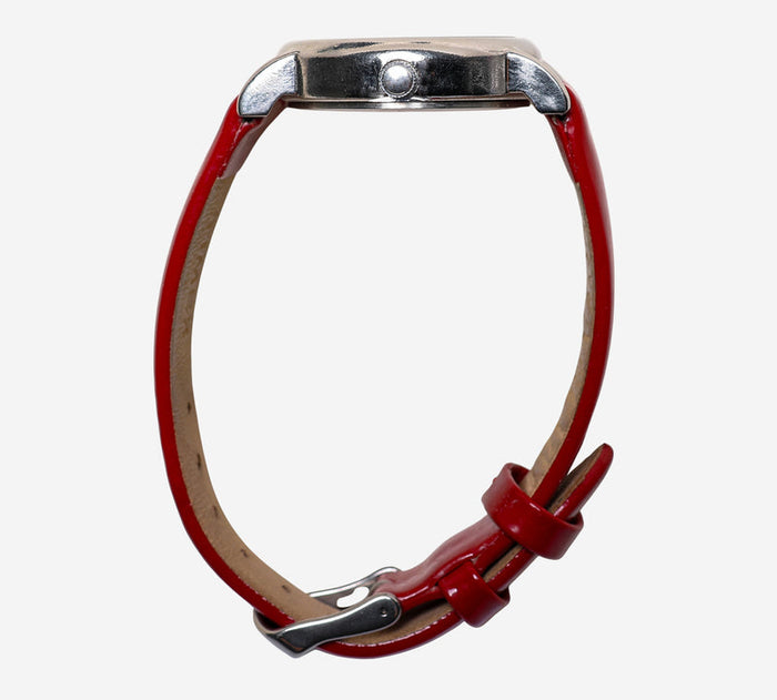 This pre-owned Timex watch is in Good condition featuring Quartz Analog movement, with a Silver case and a Red Leather 7 inch band. Own a piece of watchmaking history and give this watch a second life. All watch movements and batteries have been tested and operate as intended. No battery included for D5quartz watches. We cannot guarantee water resistance ratings are intact.