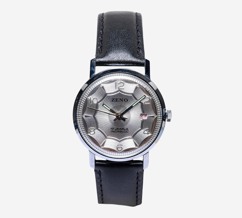 This pre-owned Zeno watch is in Excellent condition featuring Automatic movement, with a Silver case and a Black Leather 7.5 inch band. Own a piece of watchmaking history and give this watch a second life. All watch movements and batteries have been tested and operate as intended. No battery included for D5quartz watches. We cannot guarantee water resistance ratings are intact.
